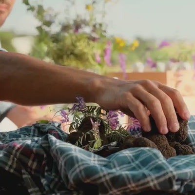 Na našim imanjima u Italiji, crni tartufi se pažljivo uzgajaju i beru, a zatim se vade korišćenjem posebne metode kako bi se sačuvali njihovi bogati hranljivi sastojci.